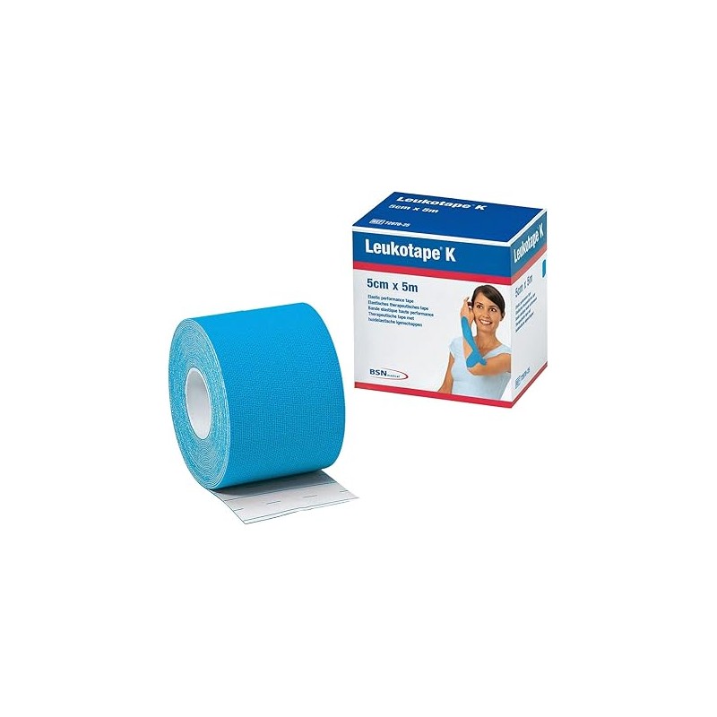 La bande adhésive Leukotape® K - bleu clair a été spécialement développée pour les professionnels de santé et s’utilise notamment en traumatologie sportive, en physiothérapie ainsi que dans divers autres domaines. Proposée en plusieurs coloris, elle se caractérise par sa grande élasticité et par sa conception favorisant le drainage lymphatique grâce à une colle disposée en ondulations.