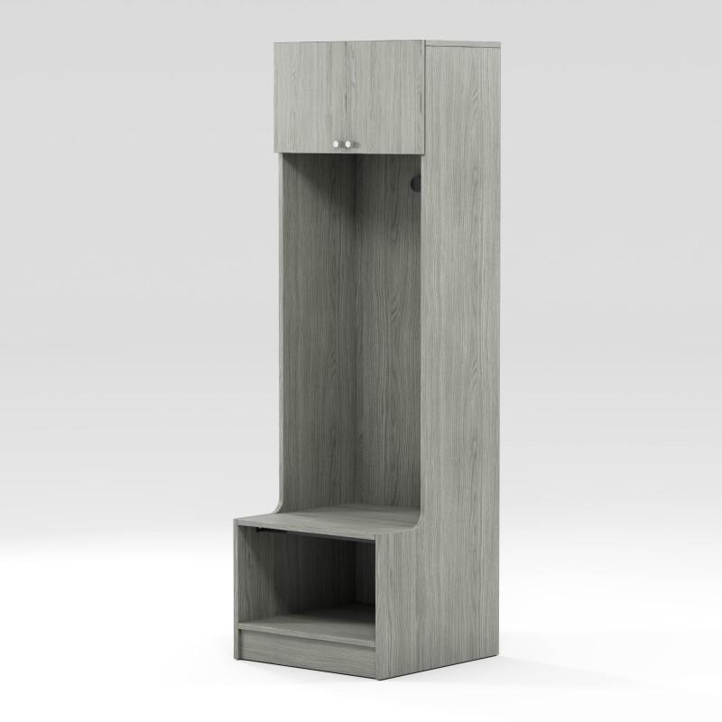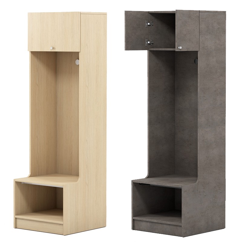 Le vestiaire football sur plinthe est l'option idéale pour optimiser l'espace de rangement dans les vestiaires. Disponible en deux tailles et huit couleurs, il offre une grande praticité avec une assise confortable, trois patères pour le rangement et un placard supérieur avec porte relevable ou à doubles battants.