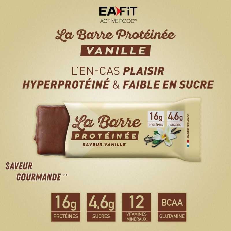 Découvrez les barres protéinées EAFIT à la vanille, l'élément essentiel de votre nutrition sportive pour une prise de muscle efficace et saine. Nos barres protéinées vous offrent une source de protéines de qualité supérieure pour soutenir vos objectifs de musculation et de récupération.
