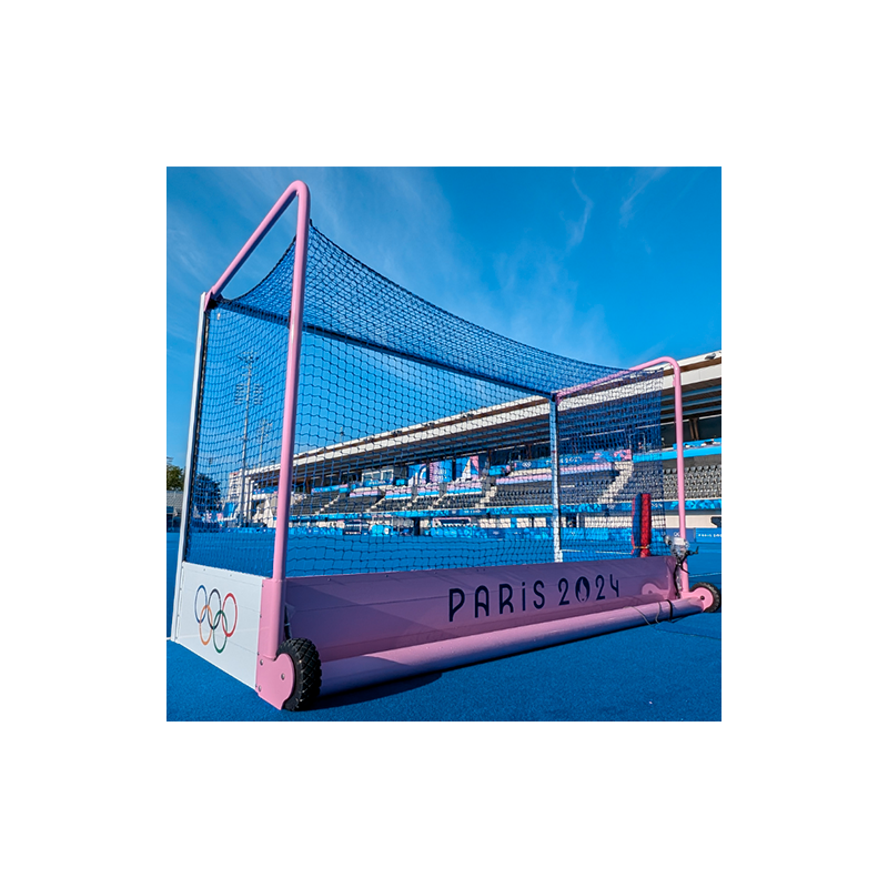Inspired by the HOC-151 model used at the London 2012 Olympic Games, it benefits from several technical improvements: reinforced top corner assembly, optimized wheel mechanism and added ballast for greater stability. Made from reinforced aluminum with welded corner joints, it offers great sturdiness and safety. Absorbent-coated aluminum rear panels reduce impact noise, while the integrated fastening system holds the net in place perfectly. With puncture-proof wheels, it's easy to move despite its solid structure.