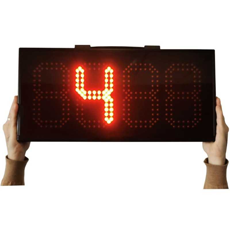- Player changeover: incoming and outgoing numbers from 0 to 99. The 18x10 cm digits ensure high visibility up to 120 meters.