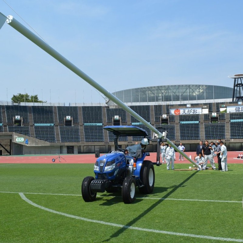 Its galvanized steel structure guarantees exceptional resistance to corrosion and mechanical stress, ensuring optimum longevity even outdoors. Thanks to its precise articulated mechanism, lifting is smooth and controlled, enabling aluminum rugby posts to be handled without damage.