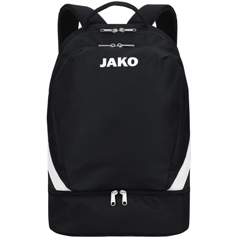 The JAKO backpack with separate red compartment is designed for soccer clubs looking for organization, comfort and practicality. Each player can store shoes, kit and accessories in separate compartments, preventing clutter and facilitating quick access to equipment.