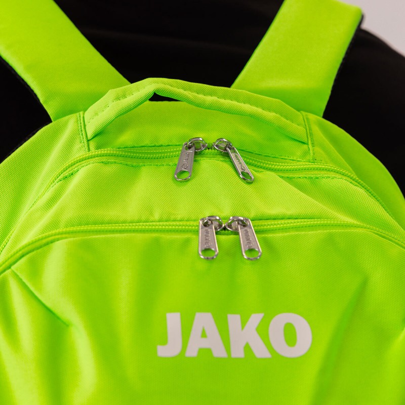 The JAKO backpack with separate fluorescent green compartment is ideal for soccer clubs that want to combine organization, comfort and practicality. Each player can store shoes, kit and accessories in separate compartments, preventing clutter and facilitating quick access to equipment.