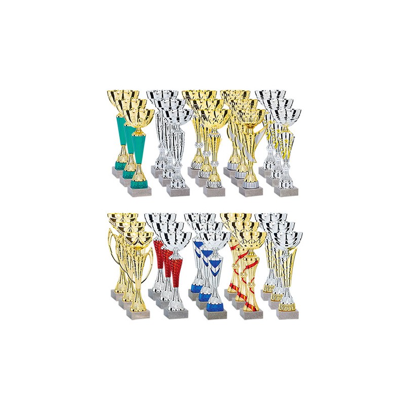 The elegantly-designed cups are made of durable, lightweight material, perfect for use in clubs, schools and sports associations. Thanks to their three distinct heights, you can distinguish podiums, categories or competition levels with simplicity and visual impact.