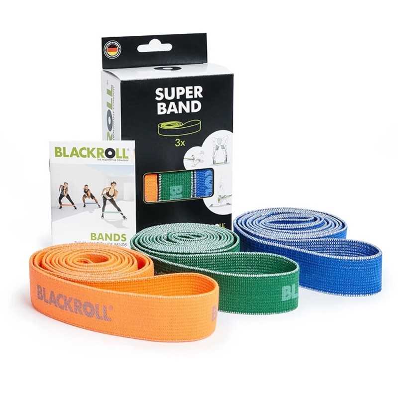 The BLACKROLL® set, which contains three different-colored rubber bands with different strengths (orange = light, green = medium, blue = strong). It's ideal for advanced users, to vary the resistance as much as they like and to offer the muscles new stimuli.
