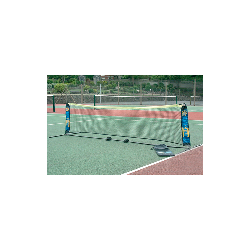 With its dimensions of 290 cm in length and 86 cm in height, it is ideal for small spaces. The lightweight PVC structure ensures quick and easy handling, while the fine mesh net guarantees good tension and a bounce suited to practice. The kit is fully transportable and can be set up in just a few minutes without tools.