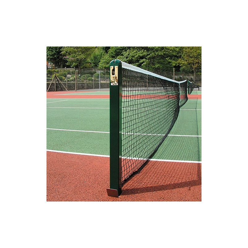 L’un des poteaux est équipé d’un treuil en laiton ultra-résistant pour une tension optimale du filet, tandis que l’autre joue le rôle de support. Les douilles de 359 mm de profondeur assurent une parfaite stabilité, avec des couvercles articulés affleurants pour un rendu soigné. Livrés complets avec tige de retenue en acier inoxydable, poulie en laiton, douilles, couvercles et fixations, ces poteaux représentent une solution durable et pratique pour l’équipement de terrains de tennis.