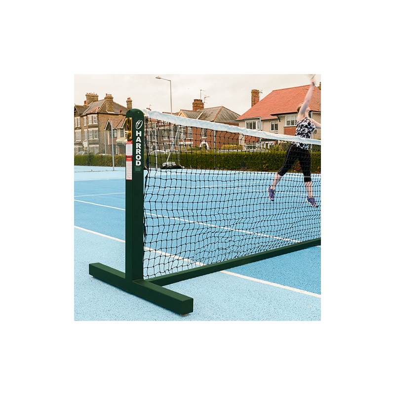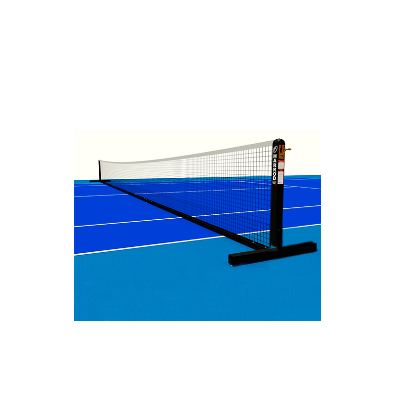 Les montants en acier de 76 mm de diamètre et la barre de connexion en acier pré-galvanisé offrent une solidité adaptée à un usage intensif. Leur installation ne nécessite pas de renforts diagonaux et ils peuvent atteindre la hauteur réglementaire du filet grâce au treuil en laiton intégré. Les patins en caoutchouc permettent de protéger la surface du terrain lors du positionnement des poteaux.