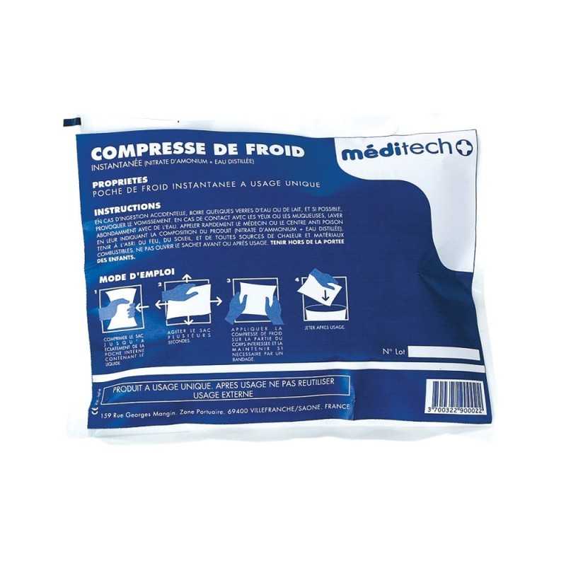 Comprimer le sac jusqu’à l’éclatement de la poche interne contenant le liquide. Agiter le sac de glace plusieurs secondes. Appliquer la compresse de froid sur la partie du corps intéressée et la maintenir si nécessaire par un bandage. Jeter après usage.
