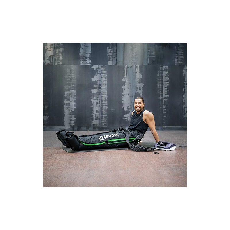 Profitez d'une récupération musculaire optimale avec le Reboots One, un appareil de pressothérapie performant. Doté de 8 chambres à air et de programmes variés, il offre un massage complet des pieds aux bas du dos.