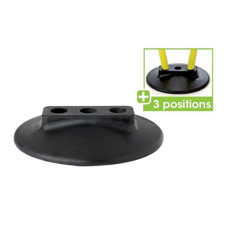 Explorez ce socle en caoutchouc lourd et plat, pensé pour accueillir jusqu'à 3 jalons de 25 mm, dont 2 en position inclinée. Doté d'un poids de 1,25 kg, ce socle offre une stabilité optimale pour répondre à vos besoins d'entraînement.