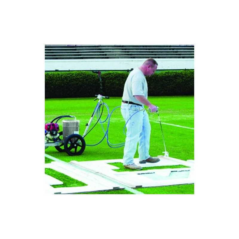 Le traçage est réglable de 5 à 20 cm sans outil, grâce aux buses RAC 5 réversibles, soit la 313 (7 à 8 litres par terrain) ou la 309 (4 à 5 litres par terrain). Une solution complète pour des lignes de marquage exceptionnelles sur le terrain.